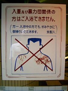 Cartaz em sauna no Japão, proibindo a entrada de pessoas tatuadas