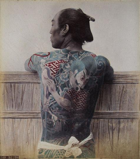 Fotografia de costas de japonês tatuado tirado ao redor de 1875. Fonte Wikipedia.