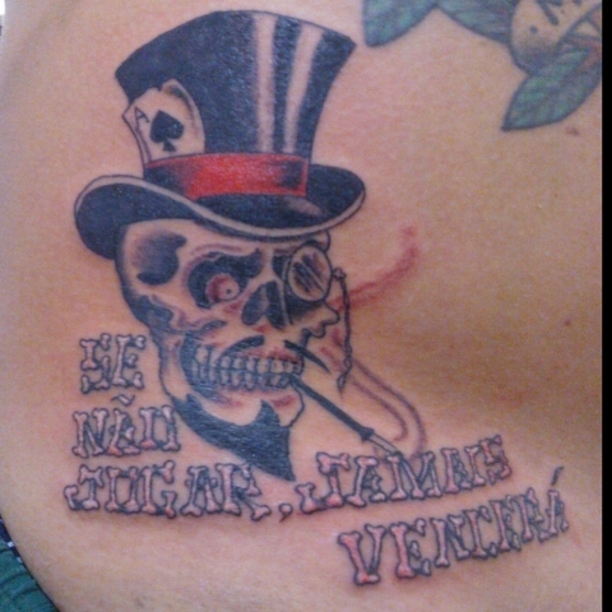 Muito bom sair da rotina do estúdio onde tudo está preparado para as minhas necessidades e enfrentar novamente os desafios de um espaço não preparado para isso (apesar do estúdio montado na sala de estar de um amigo ter o piso lavável e uma bela mesa de vidro, o que garantia a limpeza e esterilização do ambiente entre uma tattoo e outra), além do prazer de pedalar meia hora para chegar ao “estúdio” e poder pegar uma praia antes ou depois do trabalho.