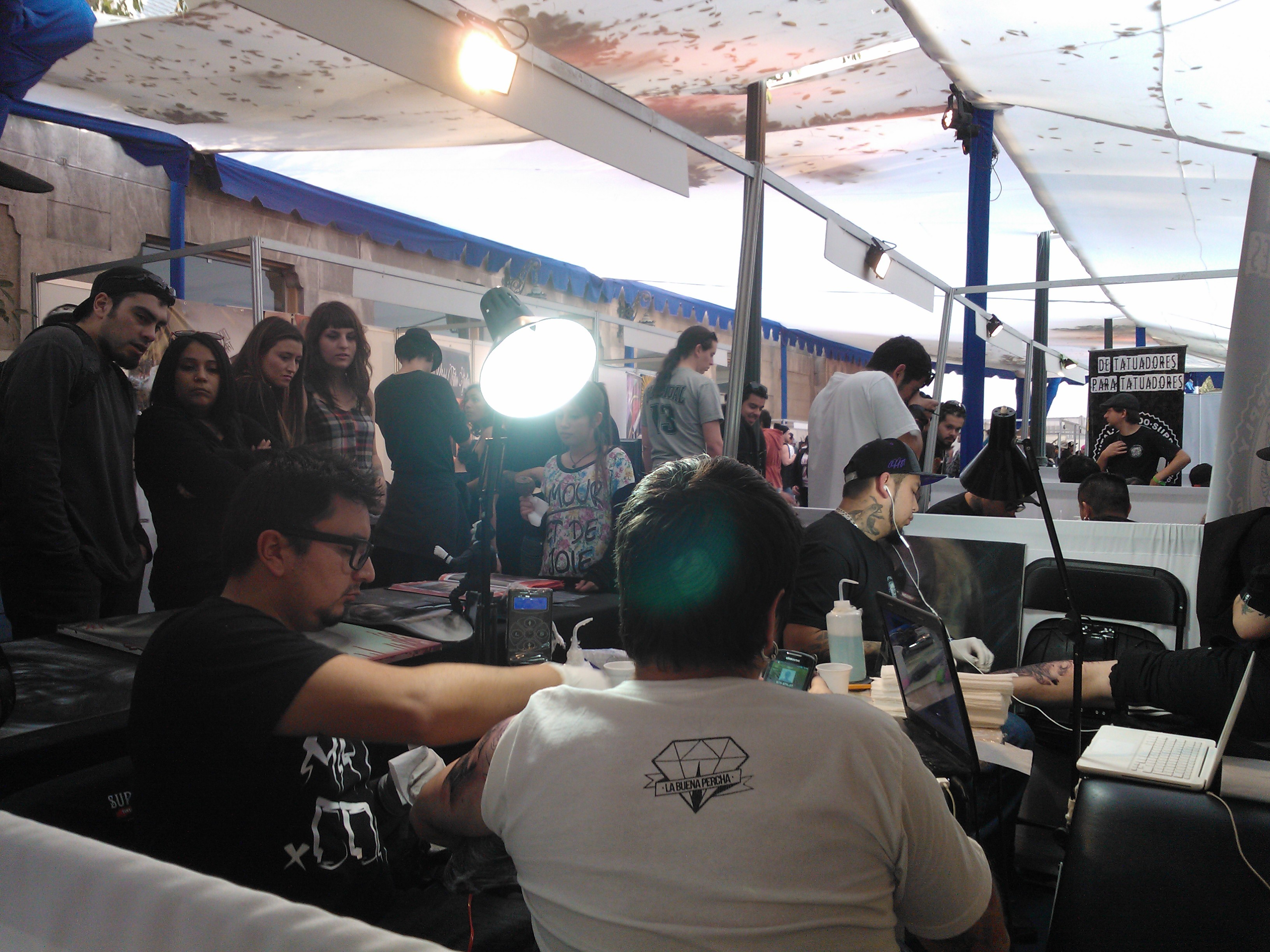 O clube hípico era um local bem grande com stands divididos em uma área interna (aonde se encontravam alguns tatuadores chilenos e internacionais), uma área externa coberta (aonde estavam os nossos stands além de alguns fornecedores de material e a grande maioria dos tatuadores chilenos.). Além desses dois espaços ainda no hipódromo propriamente dito estava a área de alimentação e um palco enorme para os shows que aconteceram durante os dois dias da convenção.